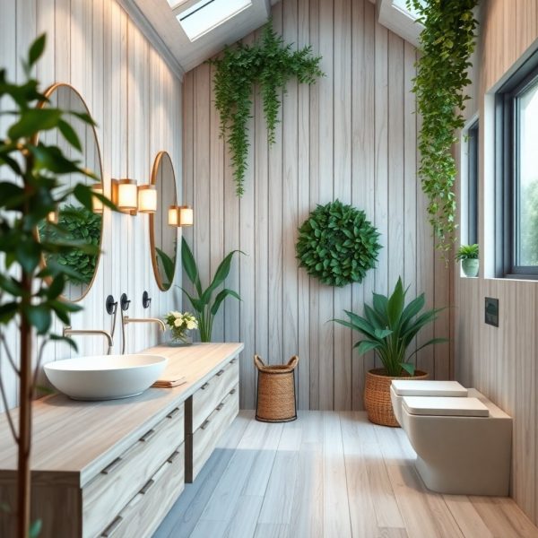 Дизайн ванной: сочетание белого дерева и зелени с неожиданным акцентом